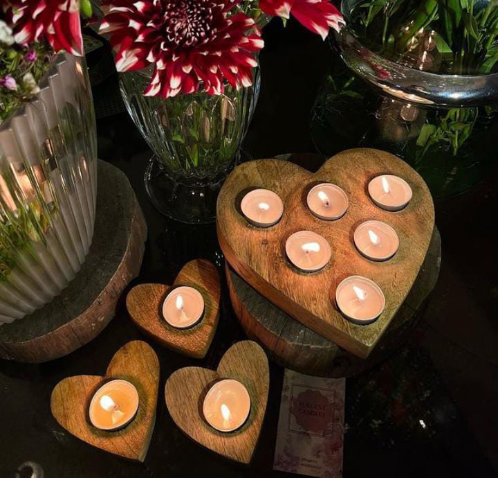 Elevate your ambiance with this Heart Shape Wooden Candle Set, expertly crafted for both aesthetic appeal and warmth. Each candle is housed in a finely finished wooden holder shaped into a perfect heart, blending natural wood textures with soft candlelight. Ideal for creating intimate settings or thoughtful gifts, this set offers a unique combination of rustic charm and elegance, enhancing any space with subtle sophistication and inviting glow.